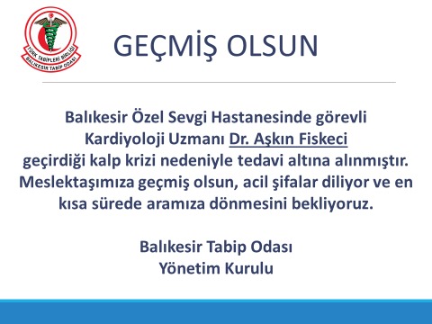 Dr. Aşkın Fiskeci’ye acil şifalar diliyoruz.